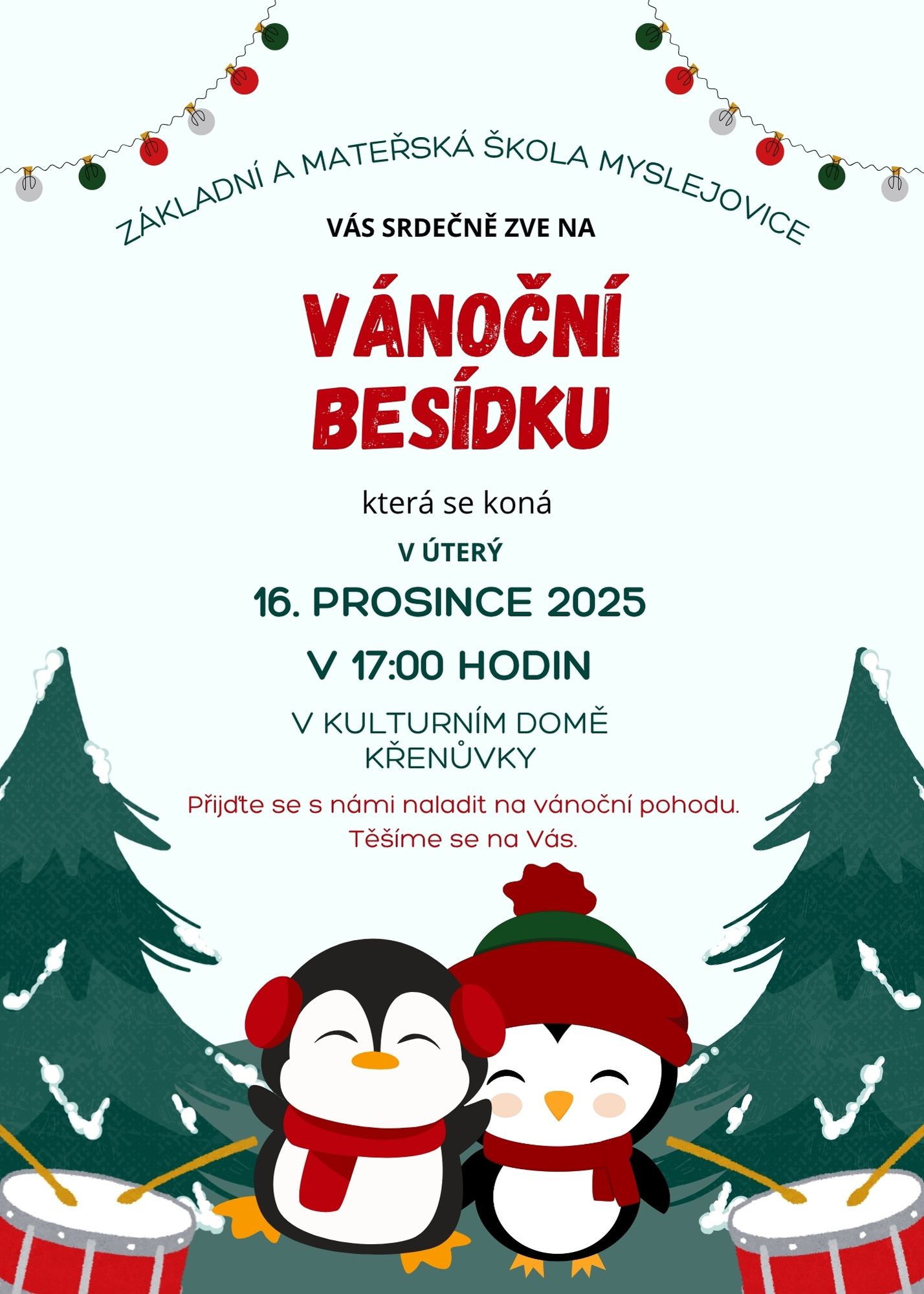 Vánoční besídka se ukuteční dne 16. 12. 2025 v 17 hodin - Kulturní dům Křenůvky